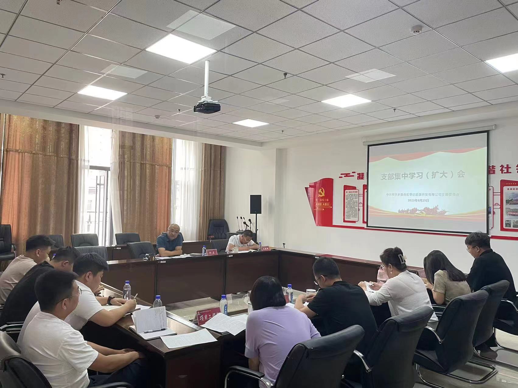 6月25日,能源公司召开支部集中学习(扩大)会议,传达学习习近平总书记在内蒙古考察时的重要讲话重要指示精神和在加强荒漠化综合防治和推进“三北”等重点生态工程建设座谈会上的重要讲话精神及孙绍骋书记在全区领导干部大会上的重要讲话,安排部署贯彻落实工作。